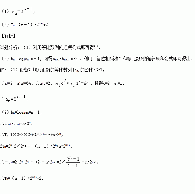 (2)设bn=log2an,求数列{an+1•bn+1}的前n项和Tn.