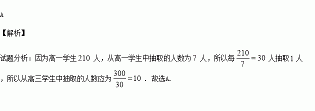 名学生进行问卷调查,如果已知从高一学生中抽取的人数为7,那么从高三学生中抽取的人数应为( )