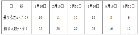我市某高中的一个综合实践研究小组欲研究昼夜温差大小与患感冒人数多少之间的关系,他们分别到气象局与某医院抄录了1至6月份每月10号的昼夜温差情况与因患感冒而就诊的人数,得到如下资料: