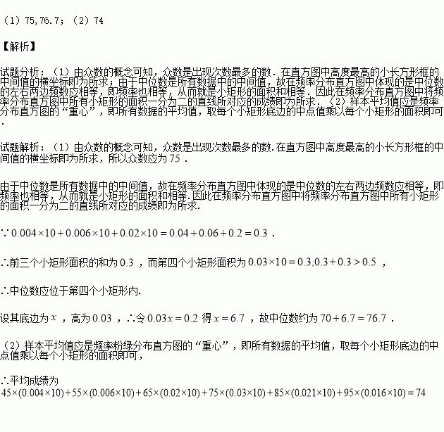 名学生参加数学竞赛,由成绩得到如下的频率分布直方图.试利用频率分布直方图求: