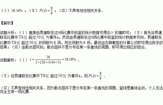 (Ⅱ)从上述9场比赛中随机选择一场,求易建联在该场比赛中