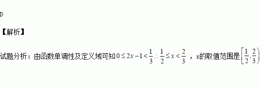 已知函数f(x)是定义在区间[0,+∞)上的增函数,则满足f(2x﹣1)<f(![]()