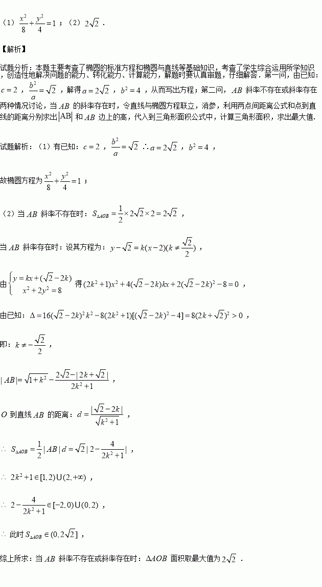 (2)过A作直线与椭圆交于另外一点B,求△AOB面积的最大值.