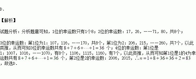 为 “幸运数”(如:8,26,2015等均为“幸运数”),将所有“幸运数”从小到大排成一列
