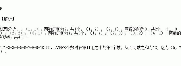 已知整数的数对列如下:(1,1),(1,2),(2,1),(1,3),(2,2),(3,1),(1,4),(2,3),(3,2),(4,1),(1,5),(2,4),![]()