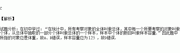 名学生进行体重的统计分析,就这个问题来说,下列说法正确的是( )
