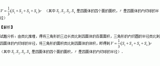 是三角形内切圆的半径),写出一个关于四面体的与之类似的结论________________________.