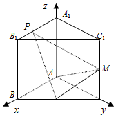 M(0,1,$\frac{1}{2}$),N($\frac{1}{2}$,$\frac{1}{2}$,0),$\overrightarrow{{A_1}P}=λ\overrightarrow{{A_1}{B_1}}=λ({1,0,0})$,$\overrightarrow{AP}=\overrightarrow{A{A_1}}+\overrightarrow{{A_1}P}=({λ,0,1})$;$\overrightarrow{PN}=({\frac{1}{2}-λ,\frac{1}{2},-1})$.…(2分)