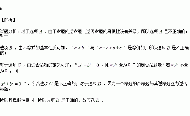 D.一个命题的否命题为真,则它的逆命题一定为真.