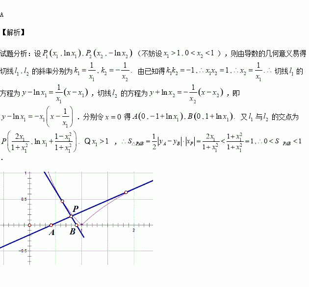 图象上点P1,P2处的切线,l1与l2垂直相交于点P,且l1,l2分别与y轴相交于点A,B,则△PAB的面积的取值范围是( )