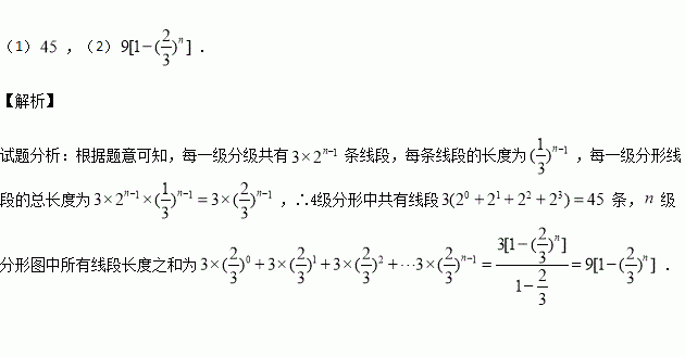 某种平面分形图如下图所示,一级分形图是由一点出发的三条线段,长度均为1,两两夹角为