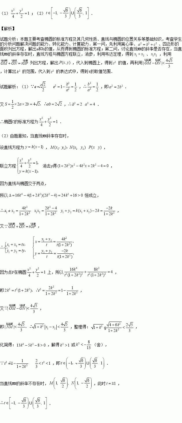 (2)过点A(1,0)的直线与椭圆C交于点M, N,设P为椭圆上一点,且
