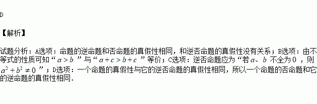 D、一个命题的否命题为真,则它的逆命题一定为真
