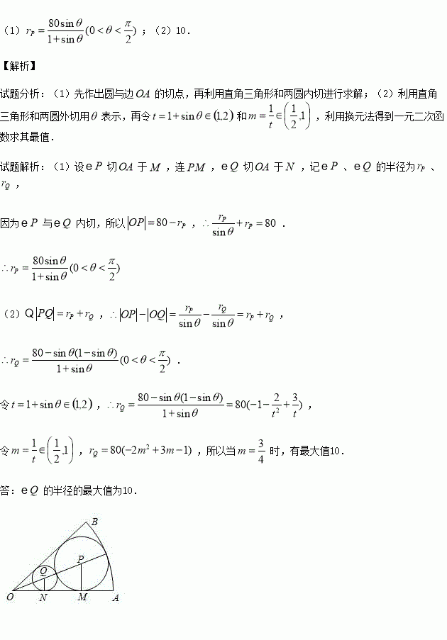 如图,某广场为一半径为80米的半圆形区域,现准备在其一扇形区域