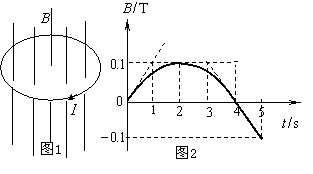 .在第1s内感应电流I 沿顺时针方向.磁场的磁感应强度B随时间t的变化规律如图2所示(其中在4~5s的时间段呈直线).则