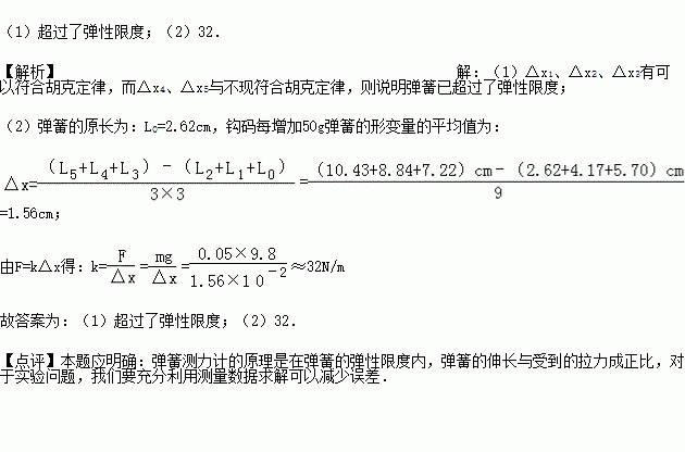 (2)小刘同学通过k(x2﹣x0)=2mg,k(x3﹣x1)=2mg得:劲度系数公式:k=