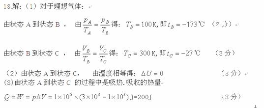 (3)该气体从状态A到状态C的过程中是吸热,还是放热?传递的热量是多少?
