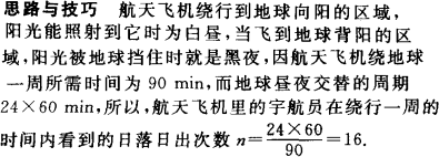 航天飞机的飞行轨道都是近地轨道,一般在地球上空300~700 km飞行,绕地球飞行一周的时间为90 min左右,这样,航天飞机里的宇航员在24 h内可以见到日落日出的次数应为