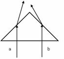 如图所示,一横截面为等腰直角三角形的玻璃棱镜,两种颜色不同的可见光细光束a 、b,垂直于斜边从空气射向玻璃,光路如图所示,则有( )