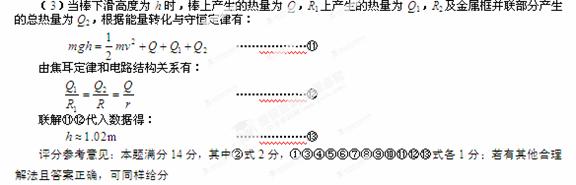 (3)若电键S闭合后,从棒ab释放到细导线被拉断的过程中棒ab上产生的电热Q=2J,此过程中棒ab下滑的高度h。