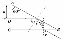 如图所示,直角玻璃三棱镜置于空气中,已知∠A=60°,∠C=90°,一束极细的光于AC的中点D垂直AC面入射,AD=a,棱镜的折射率为
