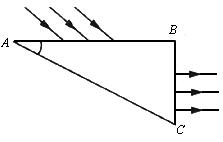 ,将棱镜放在真空中,有平行光线射向AB面,其中一部分光经过棱镜后垂直BC面射出,则入射光在AB面上的入射角为________。