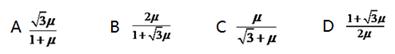 一小物块以某一初速度滑上水平足够长的固定木板,经一段时间t后停止。现将该木板改置成倾角为30°的斜面,让该小物块以相同大小的初速度沿木板上滑。则小物块上滑到最高位置所需时间t′与t之比为(设小物块与木板之间的动摩擦因数为μ)
