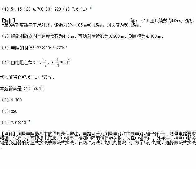 (1)用游标为20分度的卡尺测量其长度如图1,由图可知其长度为 mm;