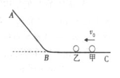 如图所示AB为光滑的斜面轨道,通过一小段光滑圆弧与光滑水平轨道BC相连接,质量为m的小球乙静止于水平轨道上,一 个质量大于m的小球甲以速度v0与乙球发生弹性正碰,碰后乙球沿水 平轨道滑向斜面AB,求:在甲、乙发生第二次碰撞之前,乙球在斜面上能达到最大高度的范围?(设斜面足够长)