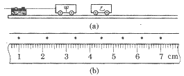 如图(a)所示,在水平光滑轨道上停着甲、乙两辆实验小车,甲车系一穿过打点计时器的纸带,当甲车受到水平向右的冲量时,随即启动打点计时器,甲车运动一段距离后,与静止的乙车发生正碰并粘在一起运动,纸带记录下碰撞前甲车和碰撞后两车运动情况如图(b)所示,电源频率为50Hz,则碰撞前甲车运动速度大小为______m/s,甲、乙两车的质量比m甲:m乙=_______.