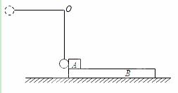 质量为M=6 kg的木板B静止于光滑水平面上,物块A质量为6 kg,停在B的左端。质量为1 kg的小球用长为0. 8 m的轻绳悬挂在固定点O上,将轻绳拉直至水平位置后,由静止释放小球,小球在最低点与A发生碰撞后反弹,反弹所能达到的最大高度为0.2 m,物块与小球可视为质点,不计空气阻力。已知A、B间的动摩擦因数