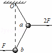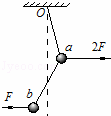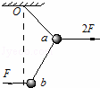 如图所示,两段等长细线串接着两个质量相等的小球a、b,悬挂于O点.现在两个小球上分别加上水平方向的外力,其中作用在b球上的力大小为F、作用在a球上的力大小为2F,则此装置平衡时的位置可能是下列哪幅图( )