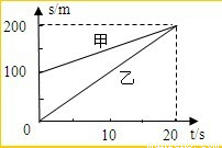 如图,甲和乙在同一直线上沿同方向从同一地点出发.甲先以5m/s的速度运动,20s后乙以10m/s的速度开始运动,并追甲.