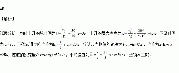 一物体以30m/s的初速度作竖直上抛运动,不计空气阻力,g取10m/s2,5s内物体的( )