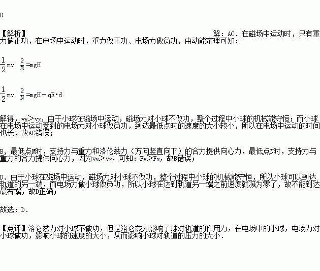 D.在磁场中小球能到达轨道的另一端,在电场中小球不能到达轨道的另一端