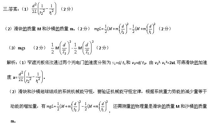 (2)该学习小组在测出滑块的加速度后,经分析讨论,由于滑块在气垫导轨上运动时空气阻力很小,可忽略,所以可用上述实验装置来验证机械能守恒定律,为验证机械能守恒定律还需测量的物理量是____________ ,机械能守恒的表达式为____________ (用题中所给物理量和测量的物理量表示)。