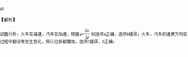 A.火车的速度变化较慢 B.汽车的加速度较小