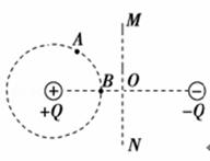 如图所示的+Q和﹣Q是两个等量异种点电荷,以点电荷+Q为圆心作圆,A、B为圆上两点,MN是两电荷连线的中垂线,与两电荷连线交点为o,下列说法正确的是