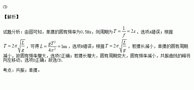 D.若摆长增大,共振曲线的峰将向左移动