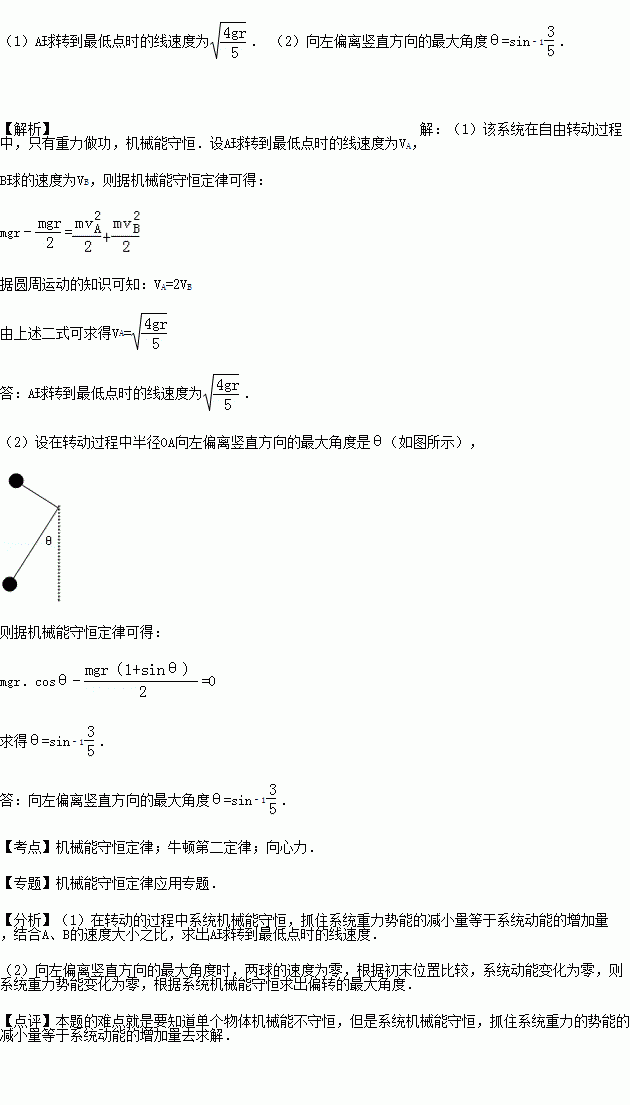(1)A球转到最低点时的线速度是多少?