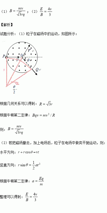 (2)若要把该磁场去掉,换成竖直向下的匀强电场,要求该粒子依然从