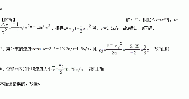 一物体以初速度为v0做匀减速运动,第1s内通过的位移为x1=3m,第2s内通过的位移为x2=2m,又经过位移x3物体的速度减小为0,则下列说法中不正确的是( )