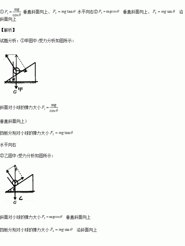 ②乙情况下斜面和②挡板分别对小球的弹力大小和方向。