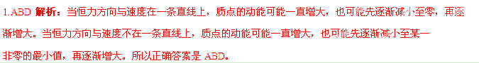 一质点开始时做匀速直线运动,从某时刻起受到一恒力作用。此后,该质点的动能可能