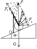 如图所示,在倾角为α的斜面上,放一质量为m的小球,小球和斜坡及挡板间均无摩擦,当挡板绕O点逆时针缓慢地转向水平位置的过程中( )