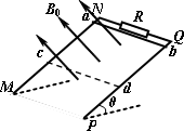 =37°,NQ间连接有一个R=5 Ω的电阻.有一匀强磁场垂直于导轨平面,磁感应强度为B0=1 T.将一根质量为m=0.05 kg的金属棒ab紧靠NQ放置在导轨上,且与导轨接触良好,导轨与金属棒的电阻均不计.现由静止释放金属棒,金属棒沿导轨向下运动过程中始终与NQ平行.已知金属棒与导轨间的动摩擦因数μ=0.5,当金属棒滑行至cd处时已经达到稳定速度,cd距离NQ为s=2 m.试解答以下问题:(g=10 m/s2,sin37°=0.6,cos37°=0.8)