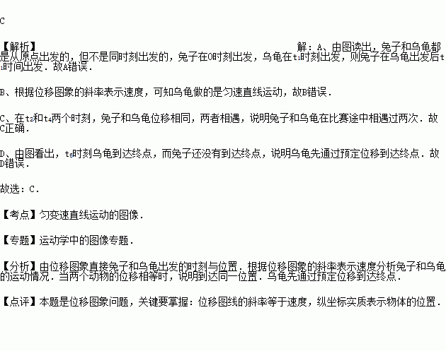 按照龟兔赛跑的故事,假设乌龟和兔子的位移﹣时间图象如图所示,由图可知( )