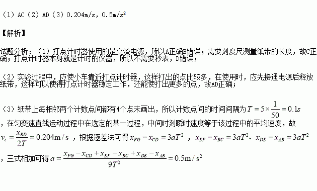 (1)除打点计时器(含纸带、复写纸)、小车、一端附有滑轮的长木板、细绳、钩码、导线及开关外,在下面的仪器和器材中,必须使用的有 (填选项代号)
