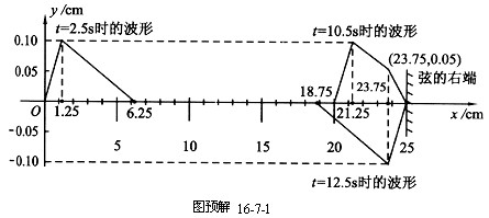 轴方向)的扰动,其位移随时间的变化规律如图预16-7-2所示。该扰动将沿弦线传播而形成波(孤立的脉冲波)。已知该波在弦线中的传播速度为