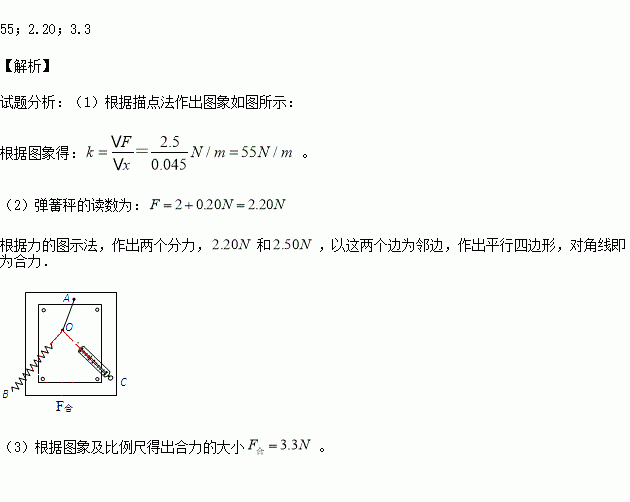 (2)某次,秤指针位置如图乙所示,其读数为 N;同时利用(1)结果获得上弹力值为2.50N,请图丙画出这两个共点力